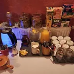 K dispozici je rychlovarná konvice, kuchyňské nádobí a skleněné nádobí, a k tomu samostatná toaleta a sprcha.